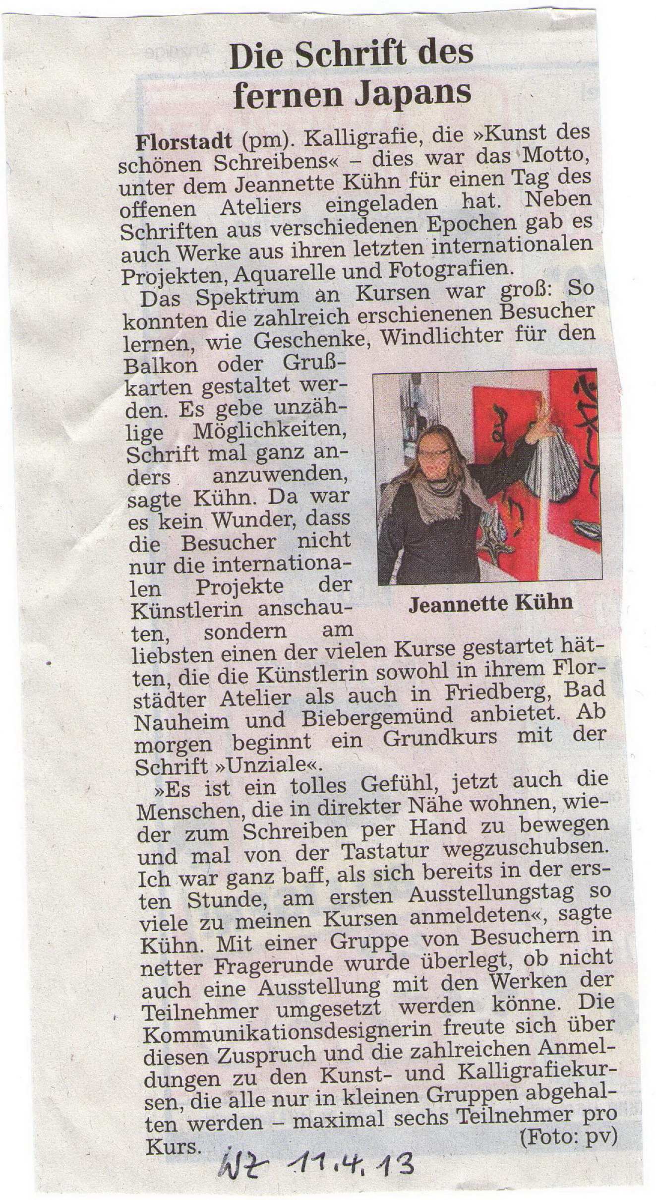 Wetterauer Zeitung, 11. April 2013 Zum Lesen/Vergrößern auf den Ausschnitt klicken.