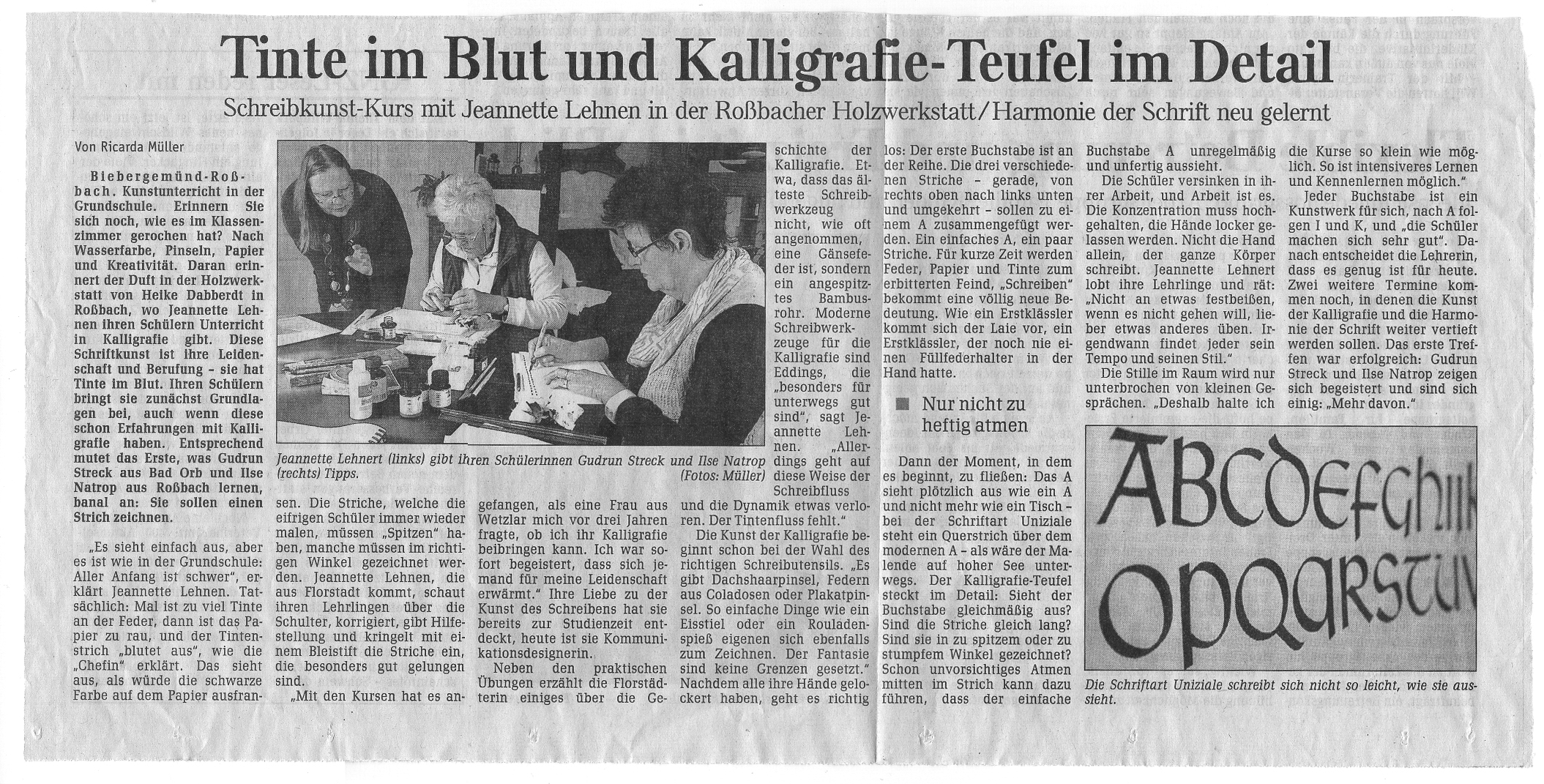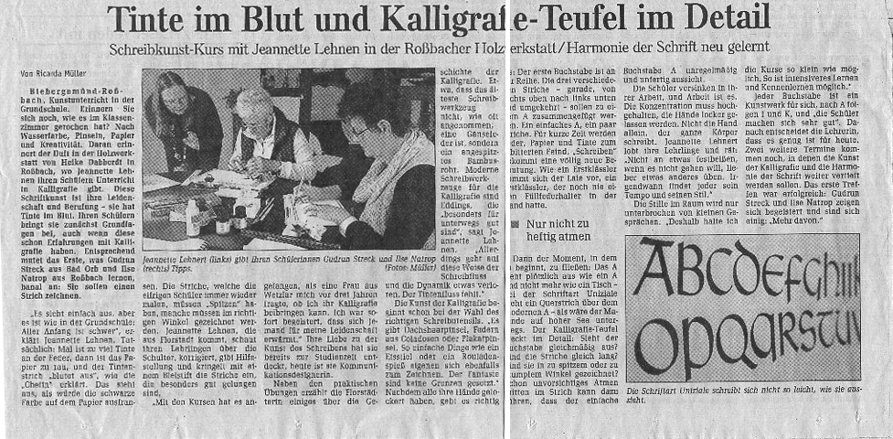 "Es ist ein tolles Gefühl jetzt auch die Menschen in direkter Nähe wieder zum Schreiben per Hand zu bewegen und mal von der Tastatur wegzuschubsen. Ich war ganz "baff", als sich bereits in der ersten Stunde, am ersten Ausstellungstag so viele zu meinen Kursen anmeldeten!"
